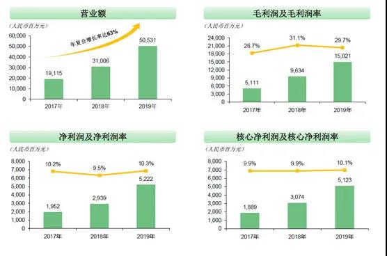 盡管并購經(jīng)驗豐富,但中國奧園的近些年的業(yè)績表現(xiàn),本質(zhì)上仍然是聚焦主業(yè)獲得的內(nèi)生性增長,而不是像很多房企一樣盲目跨界。從凈利潤率、毛利潤率來看,中國奧園近幾年的業(yè)績非常穩(wěn)定,毛利潤率穩(wěn)定在30%上下,凈利潤率和核心凈利潤率也均穩(wěn)定在10%上下。