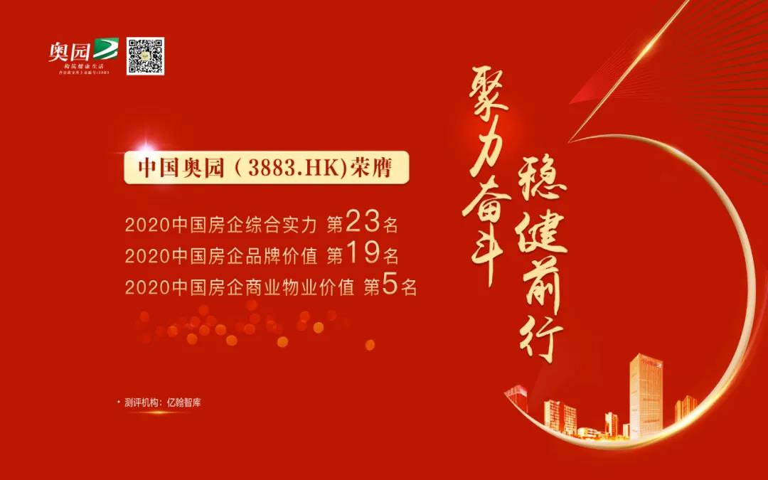 8月19日,由億翰智庫舉辦的中國房企百強峰會在上海召開,公布了“2020中國房企綜合實力TOP200企業研究”結果。中國奧園憑借強勁的綜合實力和良好的客戶口碑,一舉攬下“中國房企綜合實力第23名”“中國房企品牌價值第19名”“中國房企商業物業價值第5名” 三項大獎,同時榮登“2020中國房地產企業城市更新領域十強”“中國房地產企業雇主品牌十五強”“中國商業地產企業創新性五強”等九項子榜單。