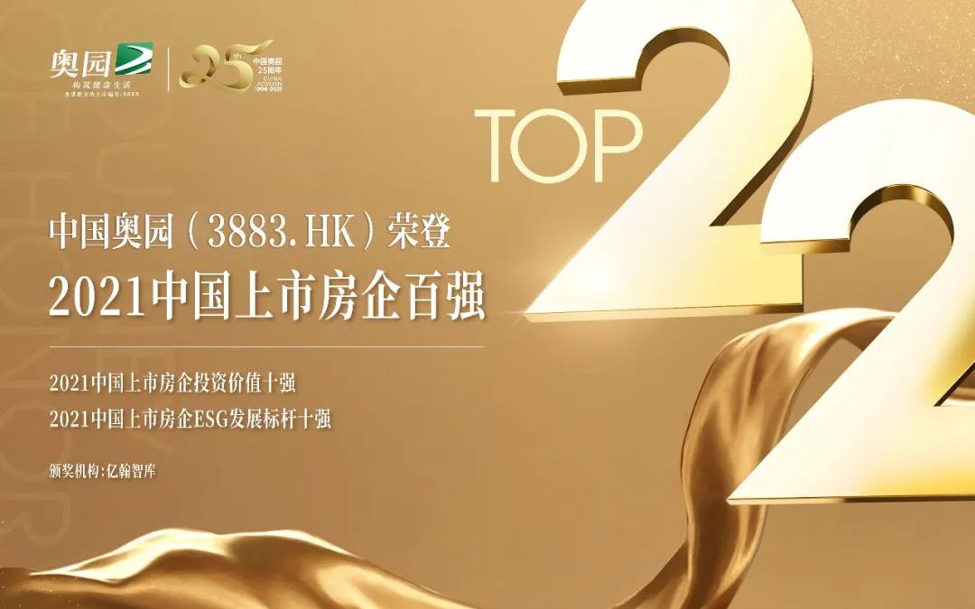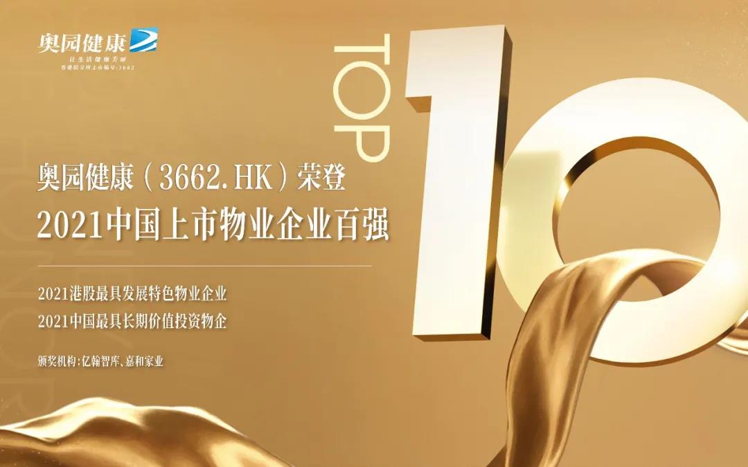 5月20日,億翰智庫、嘉和家業正式發布2021年中國上市房企百強研究報告和上市物業企業五十強研究報告,中國奧園(3883.HK)躍登“2021中國上市房企百強第22名”,再次刷新排名;奧園健康(3662.HK)榮登“2021中國上市物業企業百強第10名”。