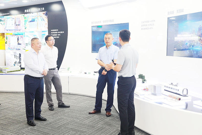 胡冉總(左)為楊景總(中)介紹納米項目合作進展
