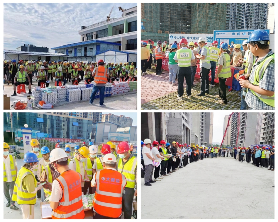 面對“烤”驗,中國奧園在全力保交付的同時,高度重視高溫期間施工安全,多措并舉防暑降溫,保障現場一線作業人員健康、安全。